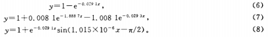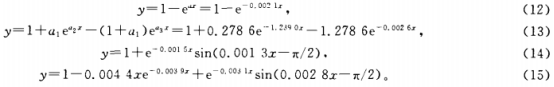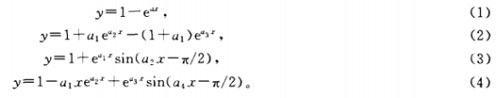 確定階躍動態響應的結構時,函數應該滿足2個條件:在x=0時,y=0;x-→∞時,y→1。顯然,上面假設的數學模型的結構滿足這2個條件。這些數學模型中,含有未知參數,這些參數可以根據實驗數據作參數辨識時得到。