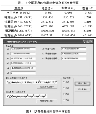 R型熱電偶在6個IIS90溫標溫度點的偏差熱電勢分別用最小二乘法和切比雪夫法進行了多階曲線擬合并用CurveExpert軟件驗證了擬合系數的正確性給出了多階函數的擬合公式。