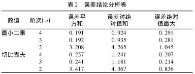 將上述兩種方法求得的擬合曲線分別帶入6個固定點數值得出表2所示的誤差結論分析表。