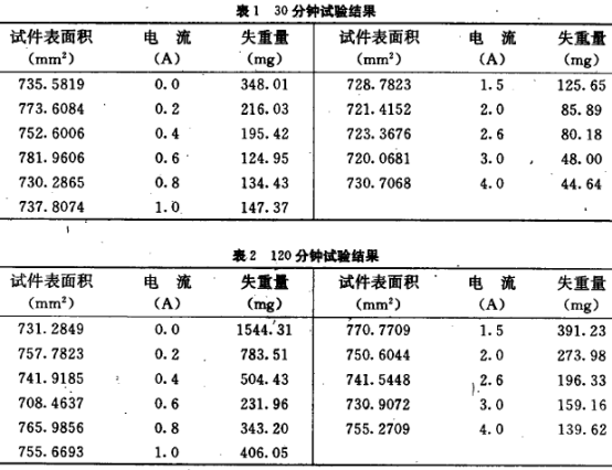 上述腐蝕速度是在兩小時試驗基礎上得出的。根據以上分析,如果試驗時間延長,且在試驗初期采用大電流密度來加速陰極極化,以后再將其降低到0.7~0.9mA/mm