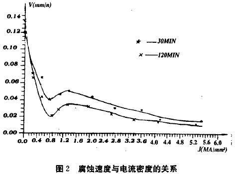 2的范圍內,腐蝕速度出現-個較低值;當J大于0.9mA/mm