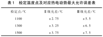 工作用鉑銠30-鉑銠6熱電偶,檢定點及最大允許誤差如表1所示"