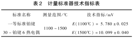 標準器為一等標準鉑銠30-鉑銠6熱電偶,主要技術指標如表2所示"