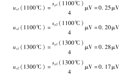 依此類推,在1100℃、1300℃溫度點由測量重復性引入的不確定度分量分別為:
