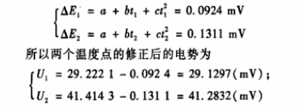 通過對修正后的電勢進行溫度換算,可以得到該電勢下的實際溫度值,即