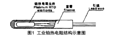 工業鉑熱電阻主要由三個部分組成:鉑金屬感溫元件(可分為繞線元件和薄膜元件等兩大類)、骨架套管和引線,與相應的電測儀器配合實現溫度測量記錄和控制等功能,其結構示意圖如圖1所示。