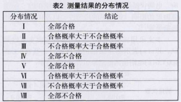 如圖3所示,X表示被測件的標稱值,區間范圍[X-ζ,X+ζ]表示測量真值所允許的誤差范圍;X表示測量結果,△表示擴展不確定度。因此,被測件的測量共有8種不同的情況,如表2所示。