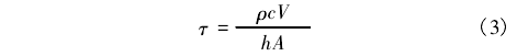 式中:ρ為傳感器前端傳感元件部分密度;c為傳感器.前端部分比熱容;V為傳感器換熱部分體積;A為傳感器前端傳感元件部分面積;h為對(duì)流換熱系數(shù)。