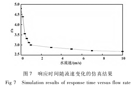 熱電阻溫度計(jì)響應(yīng)時(shí)間隨流速變化的仿真結(jié)果如圖7所示。