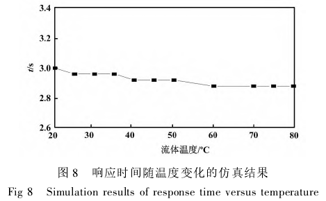 熱電阻溫度計(jì)響應(yīng)時(shí)間隨溫度變化的仿真結(jié)果如圖8所示。