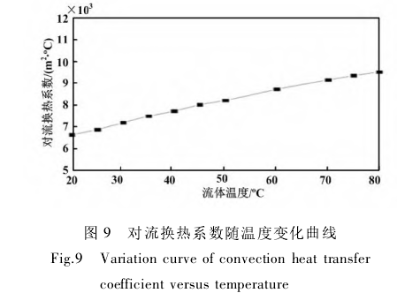 對(duì)流換熱系數(shù)隨溫度變化曲線如圖9所示。