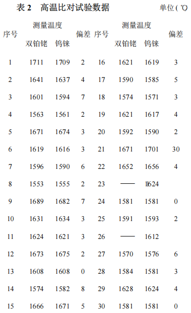 共進行了30次高溫比對試驗,試驗數據見表2。