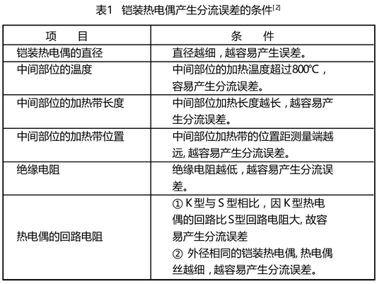 1)鎧裝熱電偶的直徑越細,絕緣電阻越低,越容易產生分流誤差;