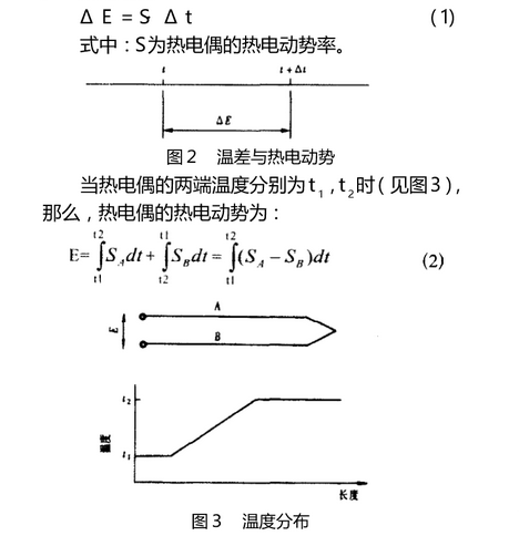 由測溫原理可知,分流誤差與熱電偶熱電動勢的產生密切相關,產生分流誤差的概念如圖2所示。當熱電偶處于溫差為△t的場合下(見圖2),將產生熱電動勢△E: