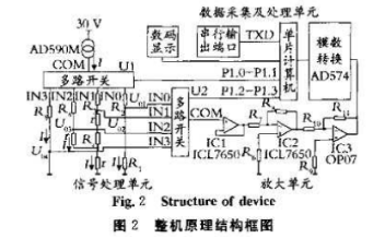 本裝置將AD590M作為恒流源,采用與標準信號采樣值比較的方法對熱電阻的電阻值進行測量,大大減小了放大器、AD轉換器溫度漂移和非線性的影響,提高了信號測量精度,在得到熱電阻數值后.采用查分度表的方法求取溫度值,實現了真正意義上的線性化溫度測最,并且,實現了全分度范圍的溫度測量。不計熱電阻本身誤差時,在-200~850℃該裝置的測量誤差為±1℃,采用B等級熱電阻時,在-200~850℃該裝置的測量誤差約為±6℃,是一種價廉、實用的精度高測溫裝置。
